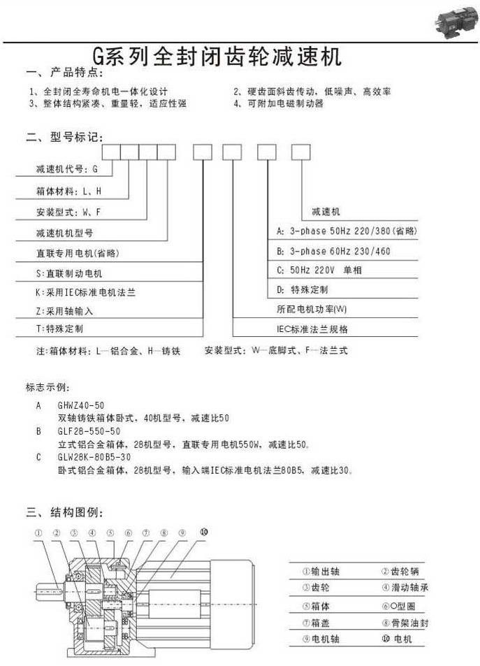 G系列全封閉齒輪減速機產(chǎn)品特點型號標(biāo)記結(jié)構(gòu)圖例