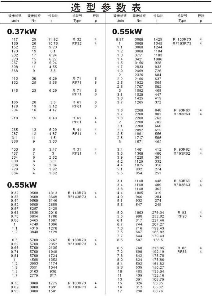 選型參數表0.37kW(續(xù)),0.55kW