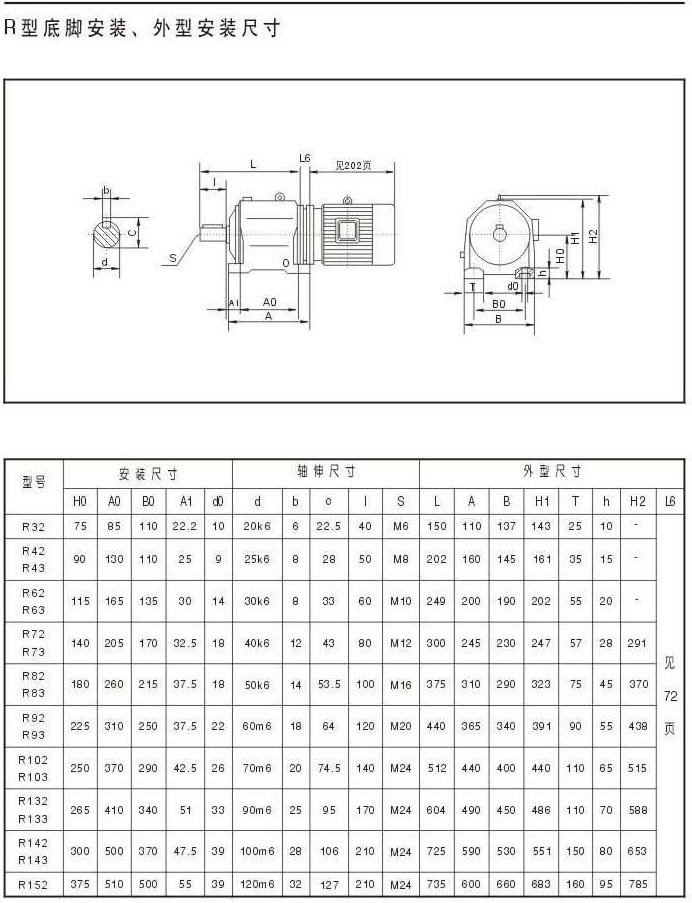 R型底腳安裝,外型安裝尺寸