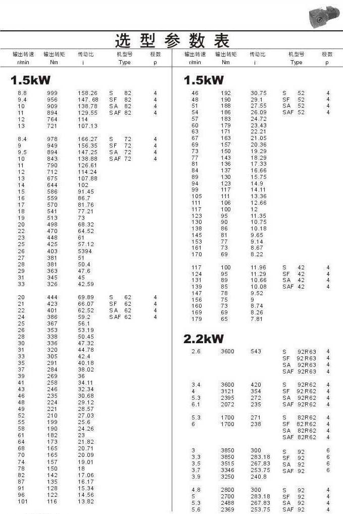 選型參數(shù)表1.5kW(續(xù))和2.2kW
